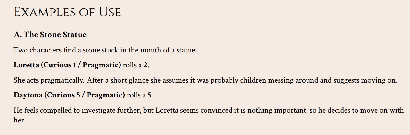 - Add personality-driven decisions to solo RPGs
